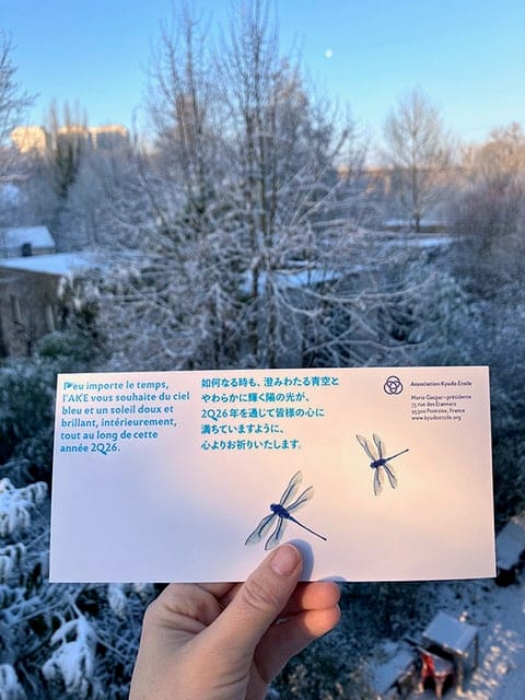 Comme toutes les années, l’AKE fait appel aux talents de ses pratiquantes et pratiquants pour la création de sa carte de voeux imprimée et envoyée à tous ses amis du kyudo, de France, d’Europe et du Japon.